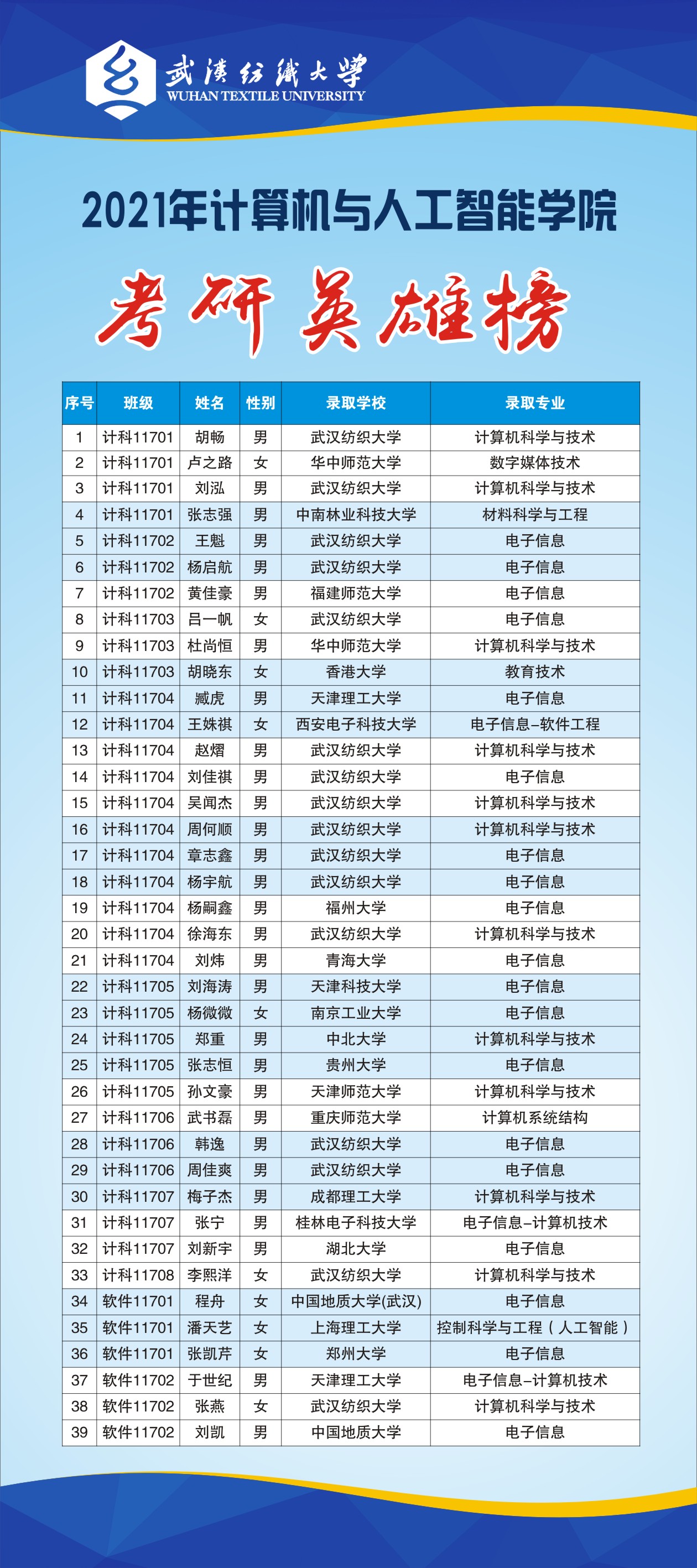 学院2006年获得计算机及应用专业硕士学位授予权,2010年获得计算机科学与技术一级学科硕士学位授予权,并于2012年获批湖北省重点培育学科,2016年计算机科学与技术学科在第四轮学科评估C-;2012 年获软件工程专业硕士学位授予权,2018年通过专业硕士学位点专项评估。