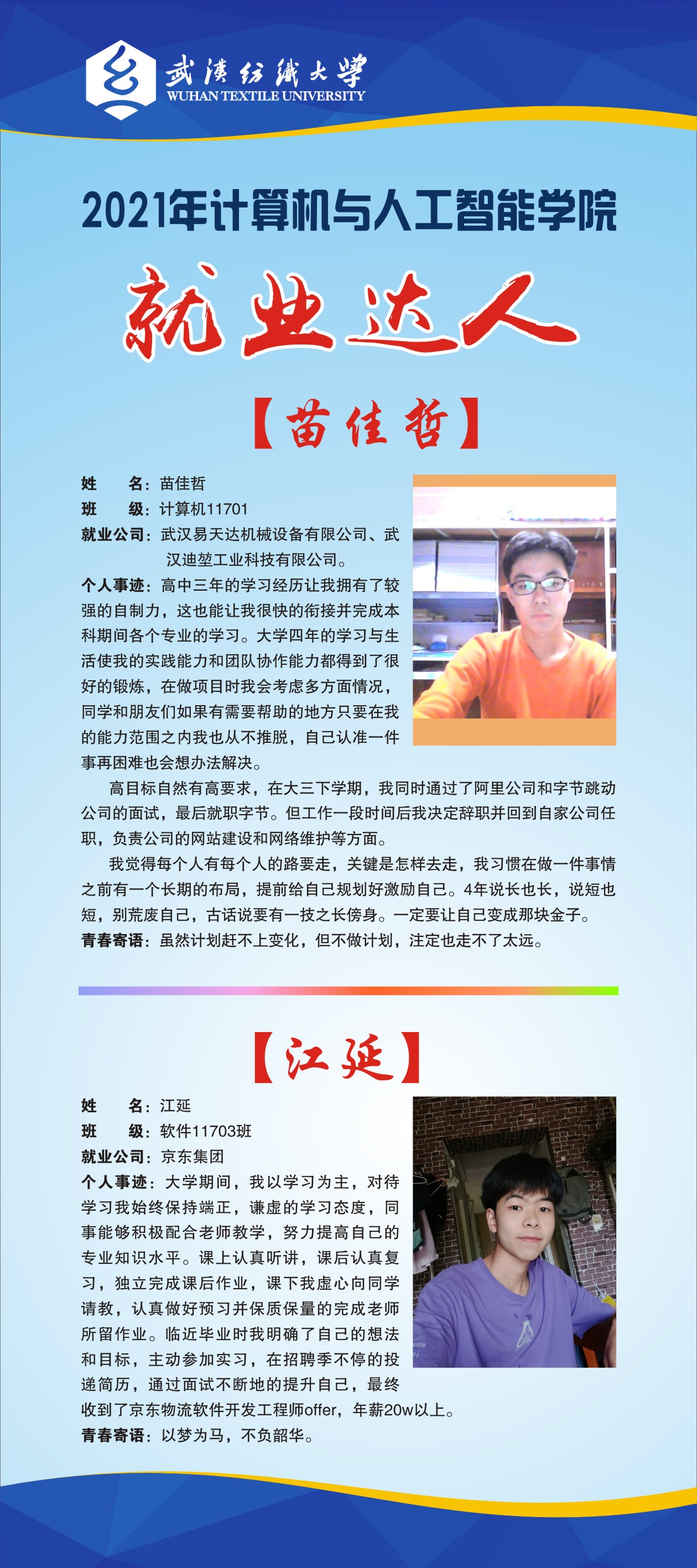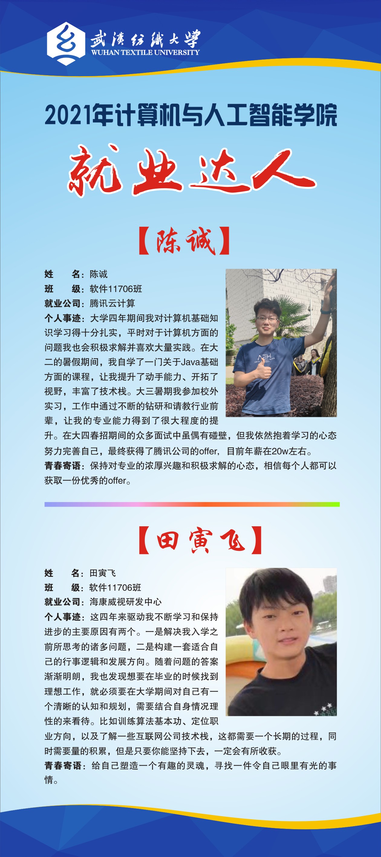 专业介绍:本专业顺应国家对人工智能人才的需求,面向人工智能领域的应用开发,算法设计等人才紧缺领域,培养掌握人工智能领域的理论知识和工程技术,富有家国情怀和奋斗精神,具有较强的创新和实践能力,能解决人工智能及相关领域复杂工程问题能力的高素质复合型创新人才。目前数据科学与大数据技术与人工智能这两个专业都隶属于计人工智能系。人工智能系共有专业教师8名,其中教授1名,副教授3人,具有博士学位7人,“阳光拔尖人才”1名,近年来,本专业教师获湖北省科技进步三等奖1项、多名教师获学校教学质量优秀奖、学校“科研标兵”、武汉尊龙凯时人生就是搏纺织大学科技进步二等奖等荣誉称号。近年来,本专业教师承担了国家自然科学基金项目、国家档案局科技项目、湖北省自然科学基金项目、湖北省教育厅重点项目和中青年人才项目,以及湖北省统计局项目等15项,出版教材2部,发表A类以上高水平论文10余篇,申请国家专利5项。主持横向项目十余项,项目经费进账600余万。拥有大数据服务中心、人工智能创新实验室、人形机器人实验室、工业机器人实验室、计算机机房、机器视觉实验室、嵌入式系统创新实验室等。同时,在人工智能等专业实践与应用场景方面,在服装产业数字化、智能化领域积极布局,拥有湖北省服装信息化工程技术研究中心、云计算研究所、机器学习研究所及大数据工程中心,还与科大讯飞、万方数据、奥浦信息等企业联合共建了人工智能实验室、纺织大数据研发中心、信息安全实验室等研发基地。、主要开设课程:计算机相关课程(程序设计语言,数据结构,数字逻辑,编译原理,操作系统,计算机网络原理,计算机组成原理);人工智能相关课程(算法分析与设计,数字图像处理,最优化方法,控制理论与方法,神经网络,机器学习,深度学习与应用,自然语言处理)。